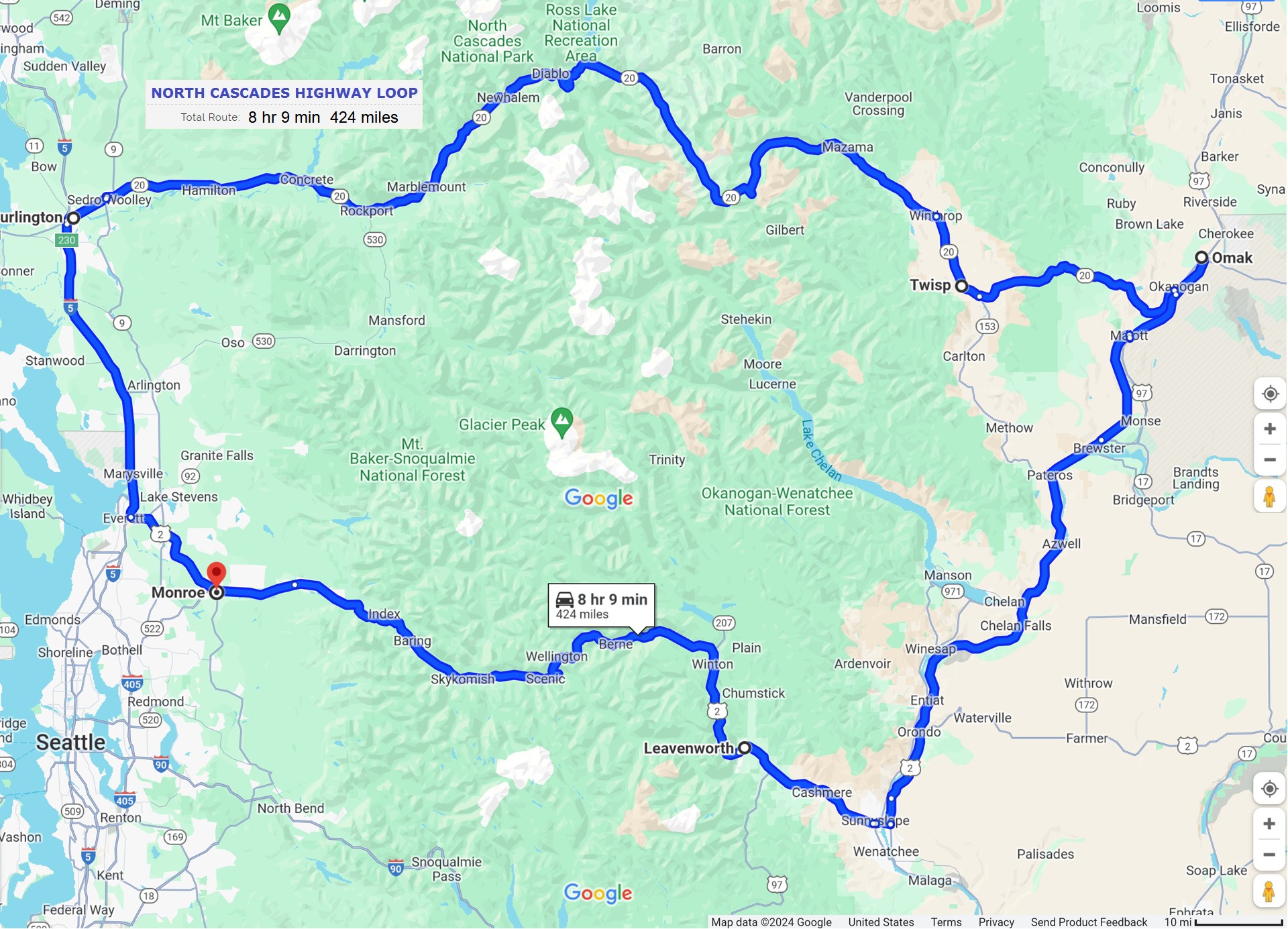 **2025 STREET RIDE** North Cascades Loop Ride - 424 Miles June 14, 2025 -TRIP MAP- -Trip Photos- *RETURN TO MAIN SITE*